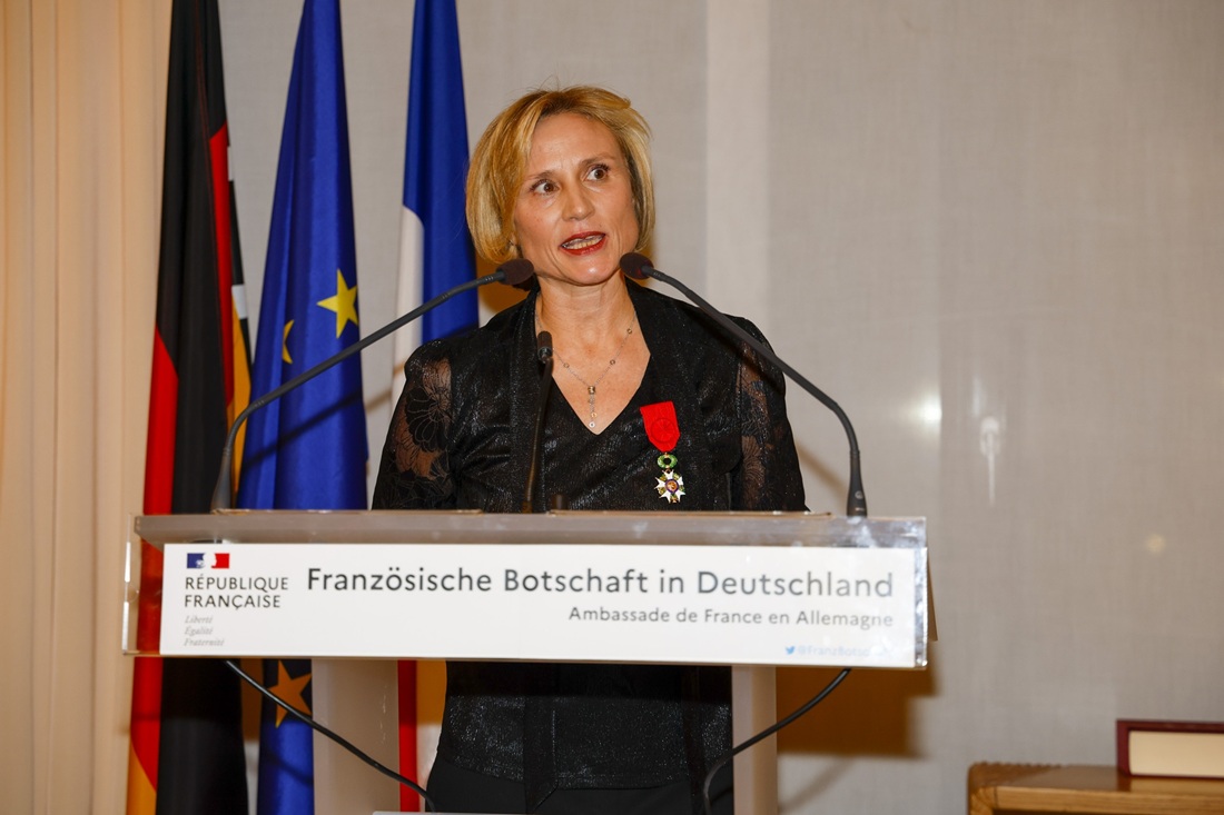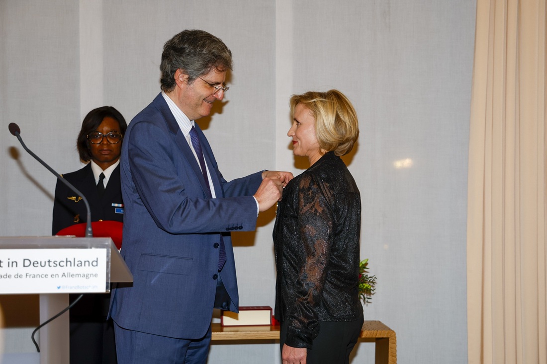 Höhepunkt des Abends war das Daniela Elstner, die Geschäftsführerin von Unifrance mit den Insignien einer Offizierin im nationalen Orden der Ehrenlegion (Légion d’honneur) ausgezeichnet wurde.