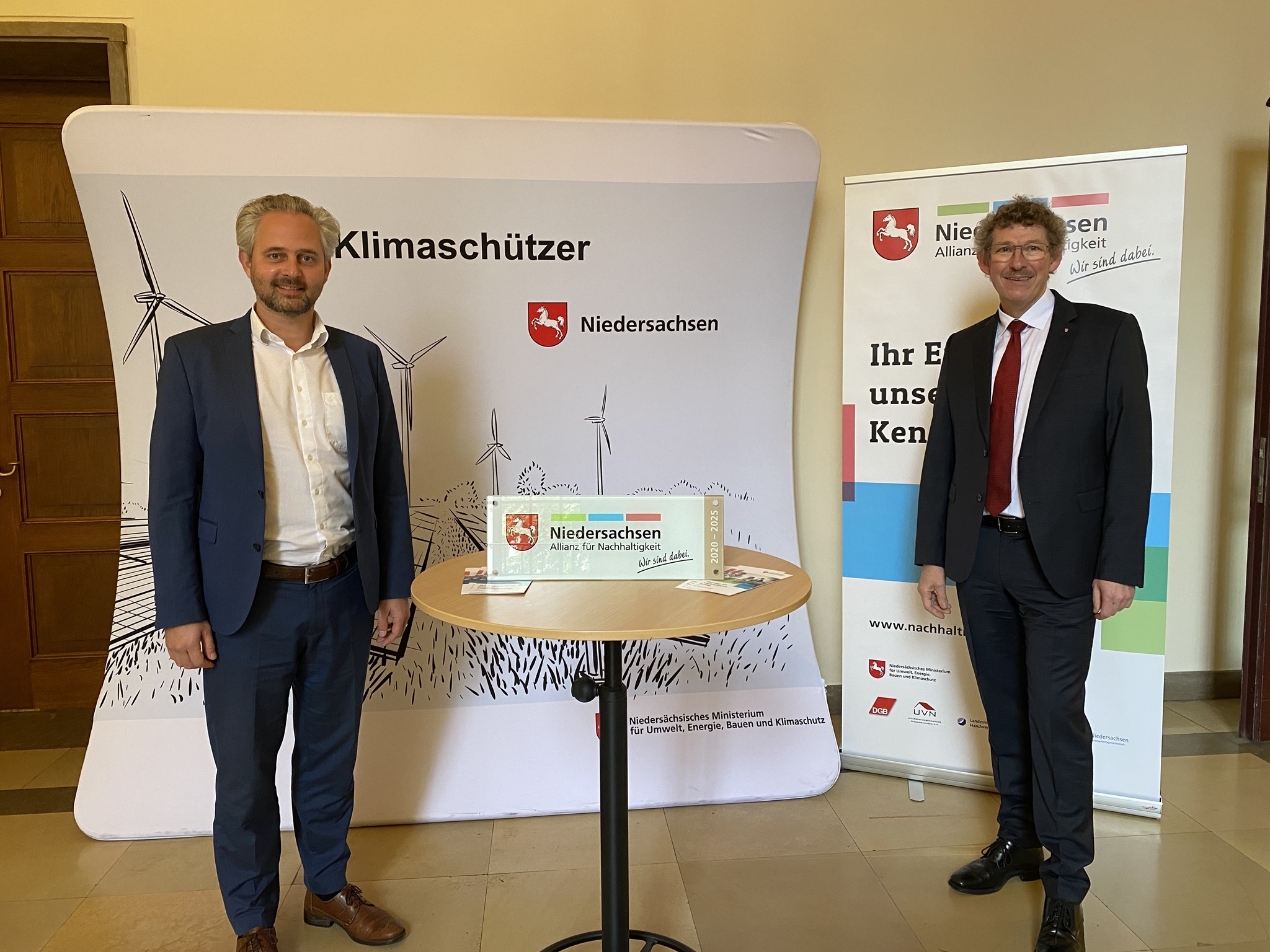 Übergeben wurde der Preis von Frank Doods, Staatssekretär des niedersächsischen Umweltministeriums, und Yannick Heringhaus, Leiter der Geschäftsstelle der Niedersachsen Allianz für Nachhaltigkeit. Die ausgezeichneten Unternehmen setzten erfolgreich Maßnahmen zur nachhaltigen Betriebsführung um und nehmen so eine Vorbildfunktion ein.
